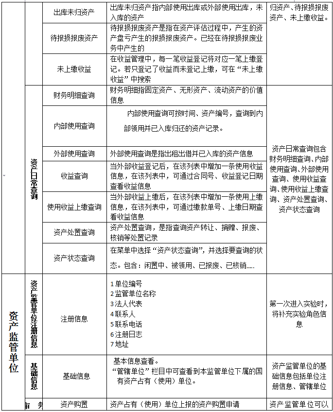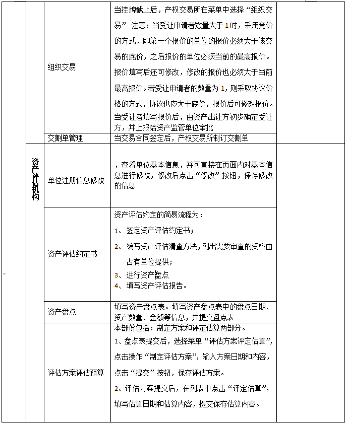 1、 主要業(ye)務(wu)(wu)(wu)(wu)包(bao)含(han):國有資(zi)(zi)(zi)(zi)(zi)(zi)產(chan)(chan)(chan)(chan)(chan)(chan)卡片管理(li);資(zi)(zi)(zi)(zi)(zi)(zi)產(chan)(chan)(chan)(chan)(chan)(chan)購置及審批; 2、 國有資(zi)(zi)(zi)(zi)(zi)(zi)產(chan)(chan)(chan)(chan)(chan)(chan)領用、入庫(ku)、變動及審批;資(zi)(zi)(zi)(zi)(zi)(zi)產(chan)(chan)(chan)(chan)(chan)(chan)出租出借(jie)、擔(dan)保(bao)抵押(ya)、對(dui)外(wai)投資(zi)(zi)(zi)(zi)(zi)(zi)及審批; 3、 國有資(zi)(zi)(zi)(zi)(zi)(zi)產(chan)(chan)(chan)(chan)(chan)(chan)轉(zhuan)讓(rang)、捐贈、劃轉(zhuan)、置換、報廢報損(sun)與核銷及審批。 4、在業(ye)務(wu)(wu)(wu)(wu)流程(cheng)中,由包(bao)含(han)著資(zi)(zi)(zi)(zi)(zi)(zi)產(chan)(chan)(chan)(chan)(chan)(chan)盤點;資(zi)(zi)(zi)(zi)(zi)(zi)產(chan)(chan)(chan)(chan)(chan)(chan)統計;產(chan)(chan)(chan)(chan)(chan)(chan)權登記及變更、年檢;產(chan)(chan)(chan)(chan)(chan)(chan)權界定(ding);清產(chan)(chan)(chan)(chan)(chan)(chan)核資(zi)(zi)(zi)(zi)(zi)(zi);資(zi)(zi)(zi)(zi)(zi)(zi)產(chan)(chan)(chan)(chan)(chan)(chan)評(ping)估(gu);資(zi)(zi)(zi)(zi)(zi)(zi)產(chan)(chan)(chan)(chan)(chan)(chan)收(shou)益管理(li)等。 5、本(ben)軟件嚴格(ge)按照資(zi)(zi)(zi)(zi)(zi)(zi)產(chan)(chan)(chan)(chan)(chan)(chan)管理(li)流程(cheng),通過(guo)資(zi)(zi)(zi)(zi)(zi)(zi)產(chan)(chan)(chan)(chan)(chan)(chan)管理(li)員、單位(wei)領導(dao)、上級(ji)管理(li)部門、資(zi)(zi)(zi)(zi)(zi)(zi)產(chan)(chan)(chan)(chan)(chan)(chan)監管部門層層審核和審批來完(wan)成業(ye)務(wu)(wu)(wu)(wu)流程(cheng)。 6、輔助單位(wei)包(bao)含(han):產(chan)(chan)(chan)(chan)(chan)(chan)權交易(yi)所、國有資(zi)(zi)(zi)(zi)(zi)(zi)產(chan)(chan)(chan)(chan)(chan)(chan)界定(ding)中介單位(wei)(律師事務(wu)(wu)(wu)(wu)所);資(zi)(zi)(zi)(zi)(zi)(zi)產(chan)(chan)(chan)(chan)(chan)(chan)評(ping)估(gu)機構、會計事務(wu)(wu)(wu)(wu)所四種角色(se)。 國有資(zi)(zi)(zi)(zi)(zi)(zi)產(chan)(chan)(chan)(chan)(chan)(chan)交易(yi)流程(cheng)