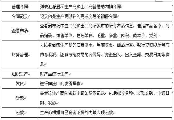 7、可以(yi)配置進(jin)口商(shang)(shang)(shang)、出(chu)口商(shang)(shang)(shang)、進(jin)口地(di)銀行(xing)、出(chu)口地(di)銀行(xing)、國稅局(ju)、海關(guan)、商(shang)(shang)(shang)檢局(ju)、保險公(gong)司(si)、貨(huo)代(dai)公(gong)司(si)、外匯管理局(ju)等相關(guan)參(can)數和業務,在實訓過程中可以(yi)分組、分角(jiao)色進(jin)行(xing)互動(dong)、交互式訓練(lian)。角(jiao)色扮演:出(chu)口商(shang)(shang)(shang)、進(jin)口商(shang)(shang)(shang)、生產商(shang)(shang)(shang)(工(gong)廠)、進(jin)口銀行(xing)、出(chu)口銀行(xing)、保險公(gong)司(si)、商(shang)(shang)(shang)檢局(ju)、海關(guan)、外匯管理局(ju)、貨(huo)代(dai)、國稅局(ju)