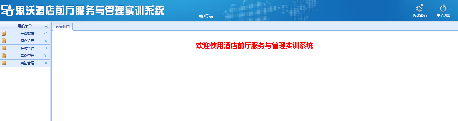 思沃酒(jiu)(jiu)店(dian)前(qian)廳(ting)服務與(yu)管理(li)模擬(ni)實(shi)訓(xun)平臺(tai)系統(tong)以學(xue)生(sheng)酒(jiu)(jiu)店(dian)前(qian)廳(ting)工(gong)作(zuo)崗位任務為基(ji)礎,以案例動畫結合的(de)(de)(de)模式開展情景模擬(ni)實(shi)訓(xun),學(xue)生(sheng)可(ke)在該(gai)教(jiao)學(xue)軟(ruan)件設置(zhi)的(de)(de)(de)虛擬(ni)酒(jiu)(jiu)店(dian)環境中,完(wan)成預定、入住辦(ban)理(li)、續(xu)住、退房、換房、會員管理(li)、故障報修、投訴處理(li)、黑名單等相關案例任務的(de)(de)(de)操作(zuo)。該(gai)教(jiao)學(xue)平臺(tai)軟(ruan)件可(ke)以逼真(zhen)的(de)(de)(de)體驗實(shi)際酒(jiu)(jiu)店(dian)前(qian)廳(ting)工(gong)作(zuo)的(de)(de)(de)過(guo)程。本公(gong)司為了(le)更好滿足高(gao)校的(de)(de)(de)教(jiao)學(xue)需求,也(ye)會根據高(gao)校的(de)(de)(de)需求提供酒(jiu)(jiu)店(dian)管理(li)實(shi)訓(xun)室解決方案,