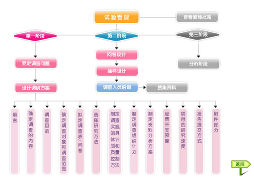 學(xue)生以教(jiao)師(shi)設(she)置的(de)實驗要求(qiu)為目標,以市(shi)場(chang)調(diao)查公司(si)總經(jing)理的(de)身份(fen)負責市(shi)場(chang)調(diao)查的(de)整個過程(cheng),根(gen)據系統的(de)操作向(xiang)導按步驟、階段性完成實驗任務。確定調(diao)研課題,設(she)計(ji)調(diao)研方案、調(diao)研問卷、抽樣方案,培訓調(diao)查人員,搜集并分析資(zi)料。