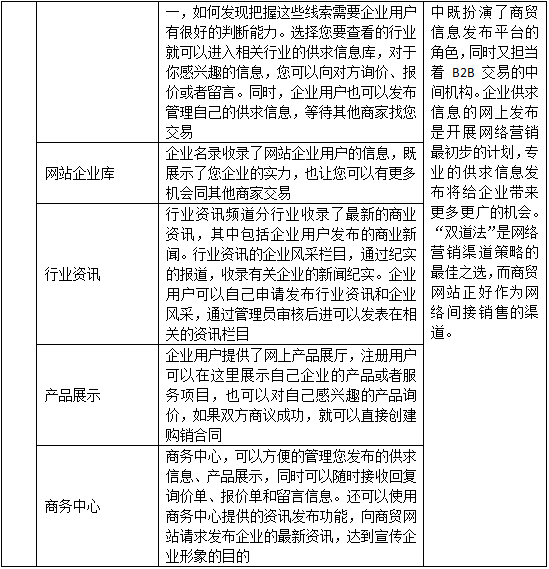 (3)商(shang)貿型(xing)網站(zhan):供(gong)求(qiu)信(xin)息 企業名錄 行(xing)業咨詢 產品展示 商(shang)務中心