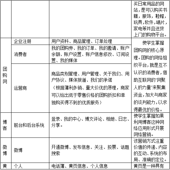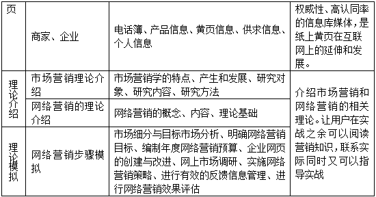 5、通(tong)過學生的(de)(de)分組,開(kai)展(zhan)各式各樣的(de)(de)網(wang)絡(luo)營(ying)銷(xiao)活(huo)動的(de)(de)流程,體(ti)會(hui)不同(tong)層次的(de)(de)網(wang)絡(luo)營(ying)銷(xiao)給企(qi)業(ye)帶(dai)來的(de)(de)機遇(yu)。而普通(tong)消費者也可以(yi)通(tong)過進(jin)入網(wang)絡(luo)環境(jing),訪(fang)問上述網(wang)站,使用個人郵件服務等感受(shou)到(dao)企(qi)業(ye)網(wang)絡(luo)營(ying)銷(xiao)的(de)(de)影響力(li)。學生通(tong)過親身(shen)操(cao)作(zuo)軟(ruan)件,可以(yi)體(ti)會(hui)到(dao)網(wang)絡(luo)營(ying)銷(xiao)與傳(chuan)統營(ying)銷(xiao)的(de)(de)區(qu)別(bie)與聯系,了解各種網(wang)絡(luo)營(ying)銷(xiao)策略以(yi)及如何具體(ti)實施。